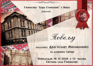Наша Гимназија има привилегију да угости једног од највећих књижевника српске књижевности, академика и добитника највиших награда и признања, писца романа „Кад су цветале тикве“, „Петријин венац“, „Чизмаши“ – Драгослава Михаиловића.