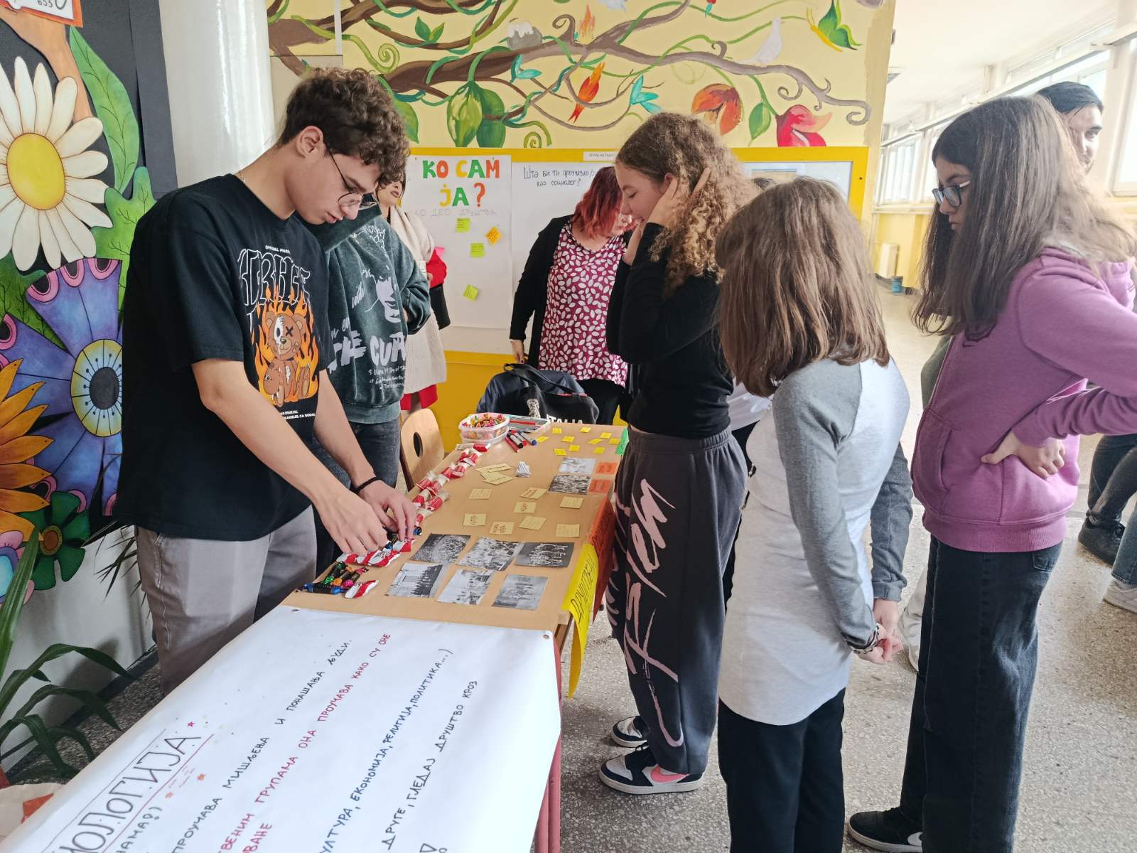 Представили су се наставни предмети социологија, филозофија, психологија и историја, кроз разноврсне радионице, игре, занимљиве садржаје и разговоре. Активности су биле пажљиво осмишљене тако да пруже нове и инспиративне информације, прилагођене узрасту најмлађих, подстичући њихову радозналост, креативност и критичко мишљење. Ученици основне школе имали су прилику да се први пут сусретну са друштвеним наукама за које можда до сада нису ни чули, а многи су активно учествовали и постављали бројна занимљива питања.